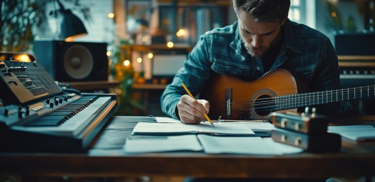 Songwriting and composing are creative processes that create new music. Although they are often used interchangeably, there is a subtle difference in focus: songwriting usually focuses on songs with vocals and lyrics (pop, rock, folk), while composing is a broader term for the arrangement of sounds, often (but not exclusively) instrumental.