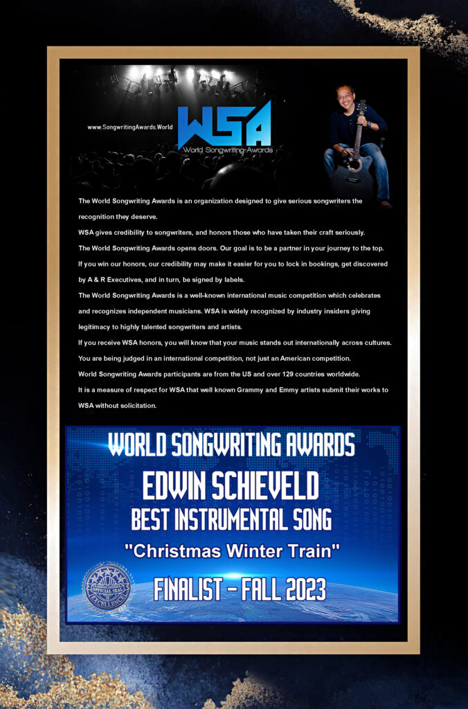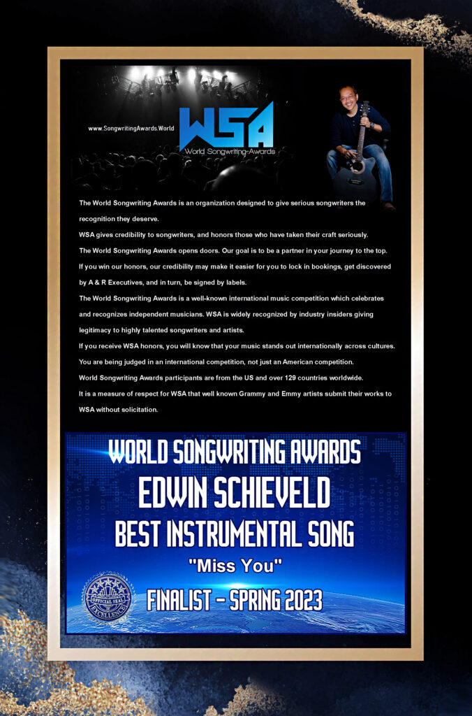 The World Songwriting Awards is a well-known international music competition which celebrates and recognizes independent musicians. WSA is widely recognized by industry insiders giving legitimacy to highly talented songwriters and artists.